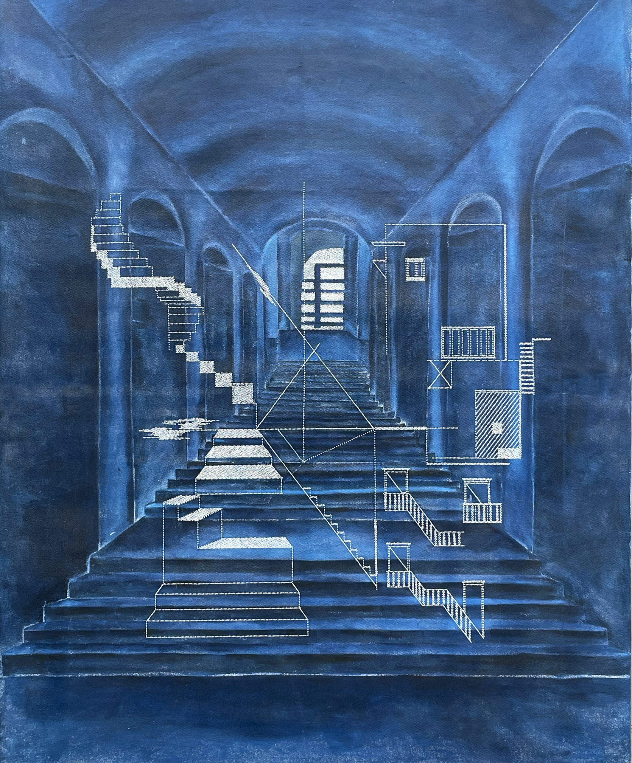 The motif of stairs stands for the ups and downs experienced in life — the highs and lows, success and loss. Each step indicates a challenge or an obstacle to overcome. When moving forward, it is natural to encounter various such steps, some easy to navigate, and others more difficult. These stairs are an unflinching reminder to be patient and resilient, while lending a unique perspective at every step. In this series, Choudhary observes that most obstacles may be overcome and many goals achieved by an astute combination of patience, perspective, and perseverance.